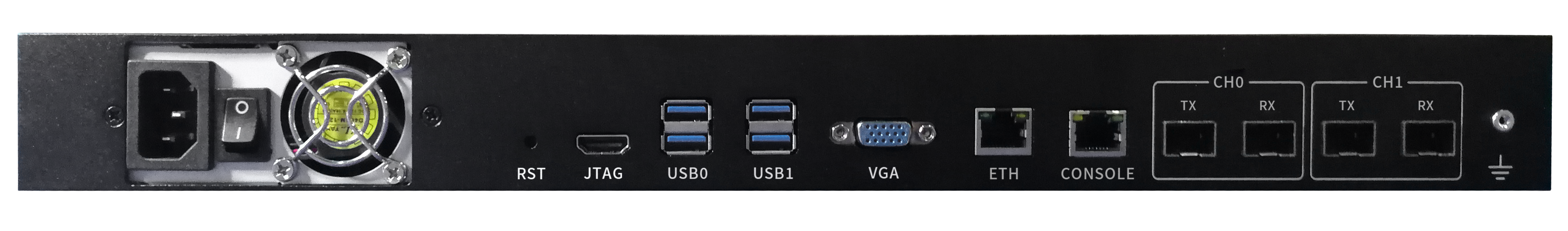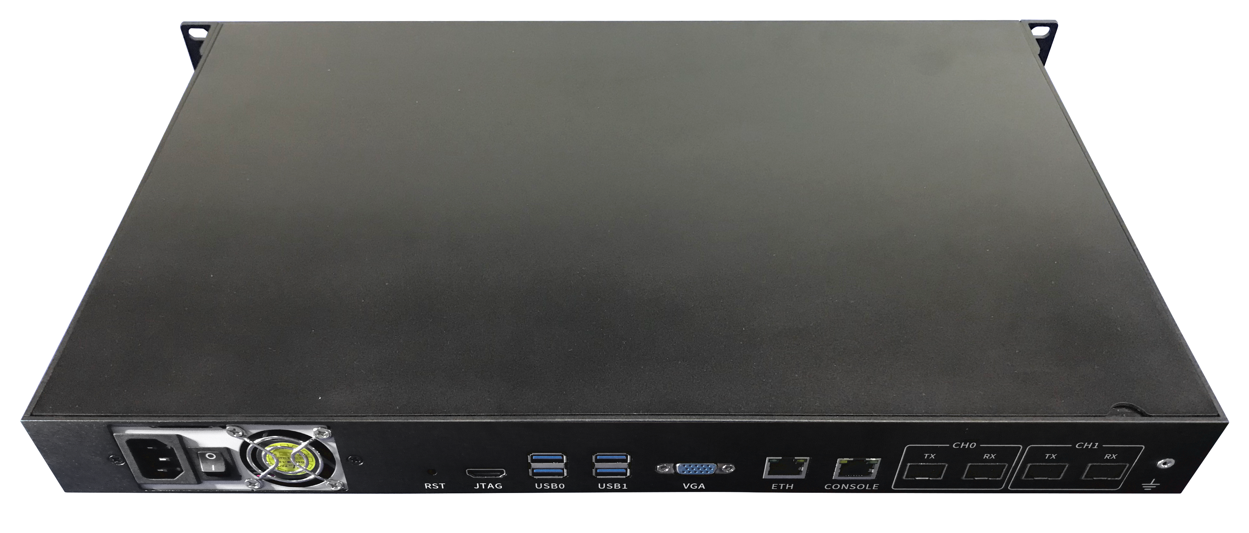 通用數(shù)據(jù)處理設(shè)備為1U,19英寸可上架平臺設(shè)備。提供了4路萬兆網(wǎng)數(shù)據(jù)通道與1路千兆網(wǎng)管理通道,可通過數(shù)據(jù)通道將數(shù)據(jù)接入;提供2片客戶FPGA,客戶可以在此平臺基礎(chǔ)上開發(fā),可通過動態(tài)升級的方式進行FPGA程序加載。