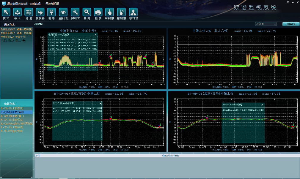 頻譜監(jiān)視系統(tǒng)是基于高速信號采集、智能信號處理與識別以及網(wǎng)絡(luò)傳輸與管理的新型頻譜監(jiān)測手段。實時頻譜監(jiān)視系統(tǒng)是集變頻、信號采集、高速數(shù)據(jù)傳輸、調(diào)制方式識別、載波參數(shù)計算、數(shù)據(jù)存儲、頻譜回放、異常告警、干擾識別、遠(yuǎn)端監(jiān)視、任務(wù)報表生成等功能為一體的新型多功能頻譜監(jiān)視系統(tǒng)
